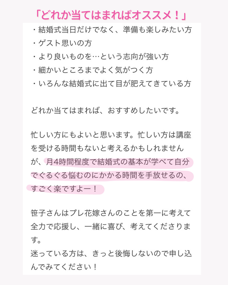 多くのプレ花嫁さんに、幸せを味わい、夫婦仲良く、